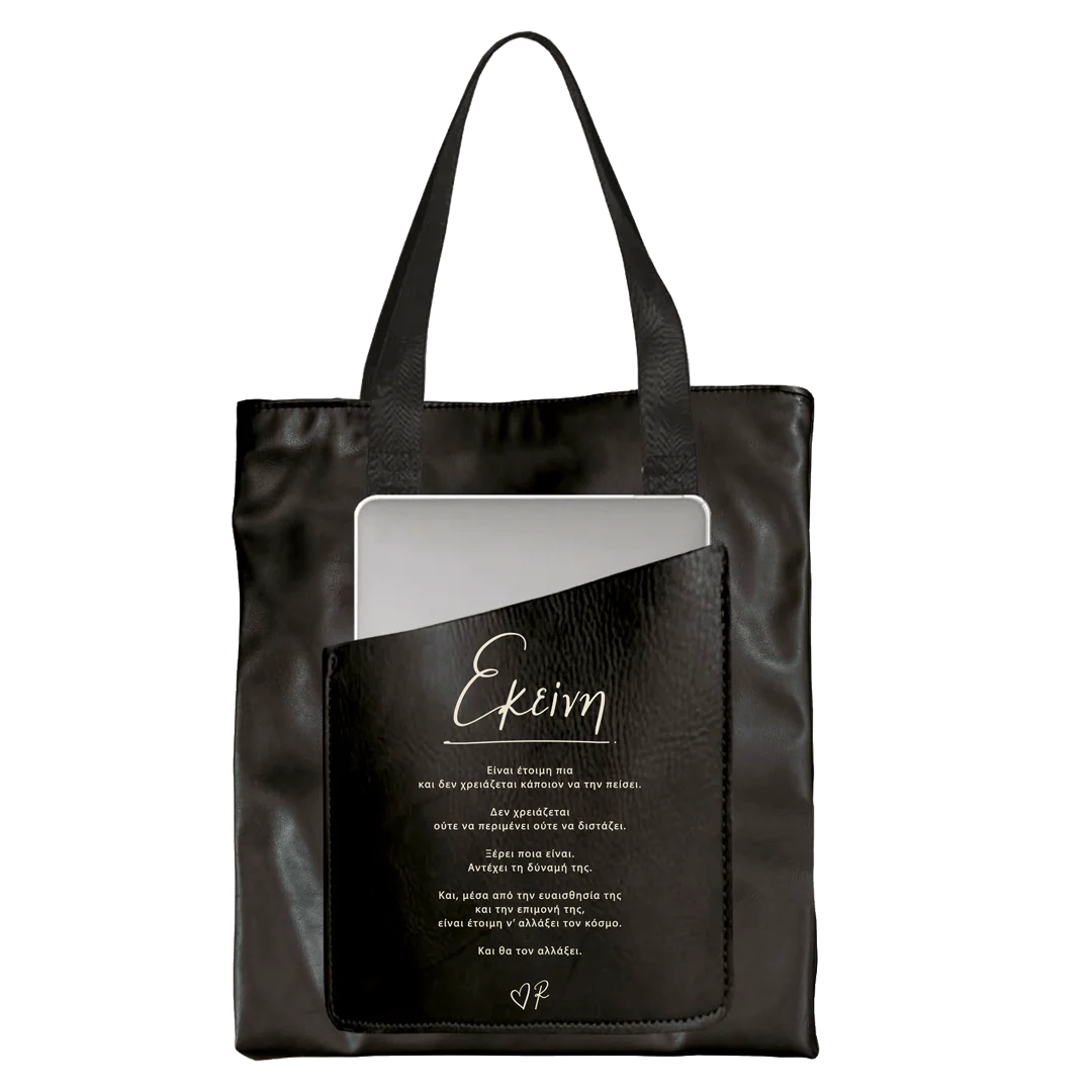 Minimal και δυναμική, με εξωτερική θήκη για laptop ή tablet, αυτή η tote bag είναι κάτi παραπάνω από ένα αξεσουάρ. Είναι δήλωση.