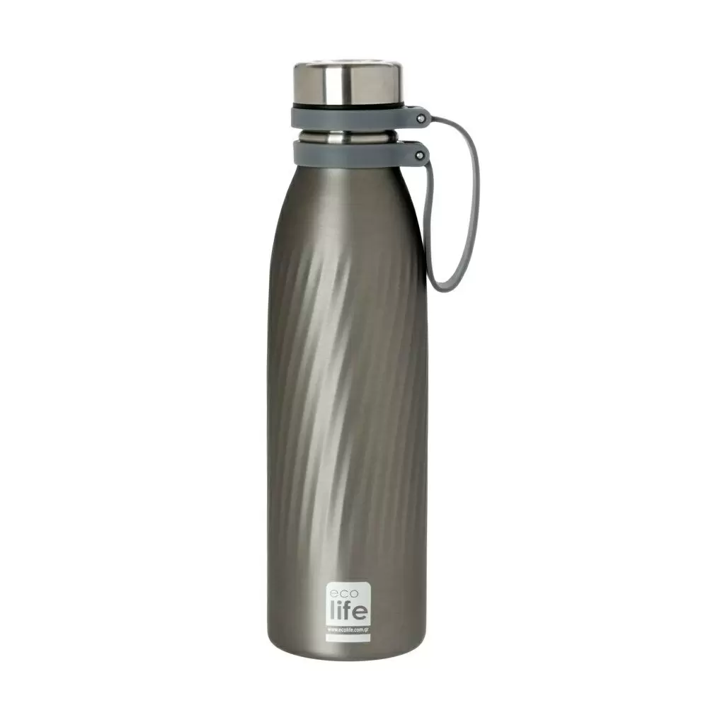 Μπουκάλι Θερμός Cool Grey κατασκευασμένο από ανοξείδωτο ατσάλι με λαστιχένιο δαχτυλίδι στο πώμα, για εύκολο πιάσιμο. Έχει διπλά τοιχώματα, για να διατηρεί τη θερμοκρασία περισσότερες ώρες. Είναι 100% ανακυκλώσιμο χωρίς αλουμίνιο και τοξικές ουσίες.