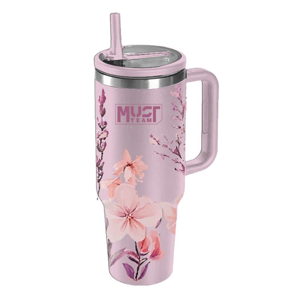 ΠΟΤΗΡΙ ΑΝΟΞΕΙΔΩΤΟ ΘΕΡΜΟΣ 1200ML ΜΕ ΚΑΛΑΜΑΚΙ 27Χ10Χ7.5ΕΚ MUST TEAM ΡΟΖ ΦΛΟΡΑΛ