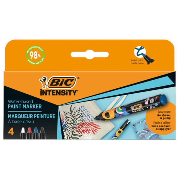 Απελευθερώστε τη ζωηρή δημιουργικότητα με αυτή τη συσκευασία 4 μαρκαδόρων BIC Intensity Assorted Paint. Με έντονο, αδιαφανές μελάνι που λειτουργεί σε γυαλί, μέταλλο, πλαστικό, ξύλο και άλλα, αυτοί οι μαρκαδόροι είναι ιδανικοί για DIY projects, χειροτεχνίες και διακόσμηση. Με γρήγορο στέγνωμα, αντοχή στο νερό και χαμηλή οσμή, κάθε μαρκαδόρος προσφέρει ομαλές, ελεγχόμενες γραμμές με πλούσια χρωματική απόδοση. Ιδανικός για καλλιτέχνες, χομπίστες και δημιουργούς κάθε είδους.