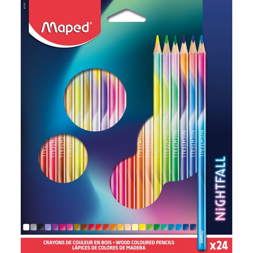 Ξυλομπογιές Maped διακοσμημένες με τα χρώματα του νυκτερινού ουρανού! Με τριγωνικό σχήμα για καλύτερο κράτημα και έντονα χρώματα. Διαθέτουν ανθεκτική μύτη που ξύνεται εύκολα και μία ολοκληρωμένη σειρά χρωμάτων. Τέλεια σειρά για όσους έχουν πάθος με την τέχνη και θέλουν να σχεδιάζουν, να ζωγραφίζουν, να διακοσμούν και να εμπλουτίζουν τα σχέδια τους.