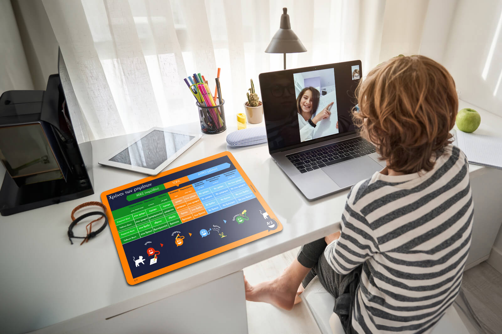 Η ώρα του γεύματος ή/ και της μελέτης συνοδεύεται από ένα διασκεδαστικό και ταυτόχρονα εκπαιδευτικό εργαλείο που βοηθάει τα παιδιά, μέσω ενεργητικής μάθησης, να κατακτήσουν θεμελιώδεις γνώσεις γραμματικής.