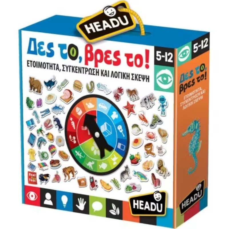 Γυρίστε τον τροχό και βρείτε τα περισσότερα σωστά αντικείμενα! Το “Δες το, βρες το” είναι ένας συναρπαστικό παιχνίδι παρατήρησης και ετοιμότητας με διαφορετικούς τρόπους παιχνιδιού, που επιτρέπουν σε μικρούς και μεγάλους να παίζουν μαζί.