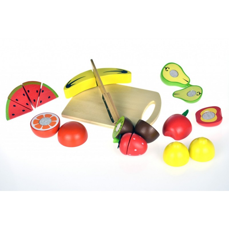 Ξύλινα Φρούτα με Ξύλο Κοπής και Δίσκο – Cutting FruitsΜε έντονα χρώματα και όμορφα σχέδια, το ξύλινο σετ φρούτων κοπής βοηθάει το παιδί  να εξοικειωθεί με τα φρούτα , τα σχήματα και τα χρώματα και να αναπτύξει καλύτερο συντονισμό κινήσεων. Συμπεριλαμβάνεται και ξύλο κοπής και δίσκος για την τοποθέτηση των φρούτων.Κατάλληλο για παιδιά ηλικίας άνω των 18 μηνών. Διαστάσεις: 40 x 35 x 5 εκ