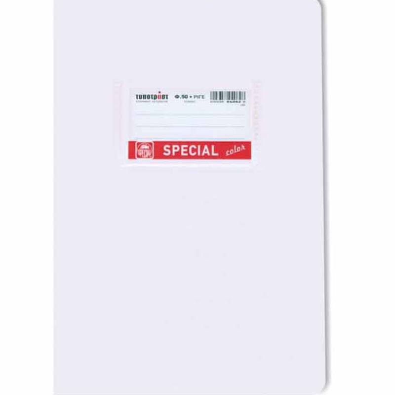 Τετράδιο καρφίτσα Special Color ριγέ λευκό με ανάγλυφο εξώφυλλο. Αποτελείται απο χαρτί 70gsm και έχει στρογγυλεμένες γωνιές.