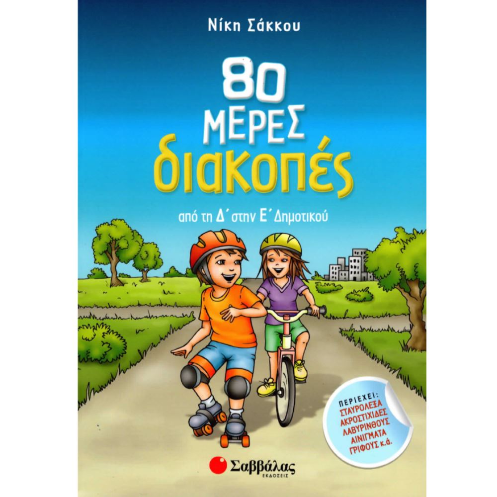 Το βιβλίο αυτό της σειράς «80 μέρες διακοπές» απευθύνεται στα παιδιά που τελείωσαν τη Δ΄ Δημοτικού και αποτελεί την ιδανική λύση για δημιουργική απασχόληση κατά τη διάρκεια των διακοπών τους. Το κάθε δισέλιδο «απευθύνεται» σε καθεμία ημέρα των διακοπών τους.