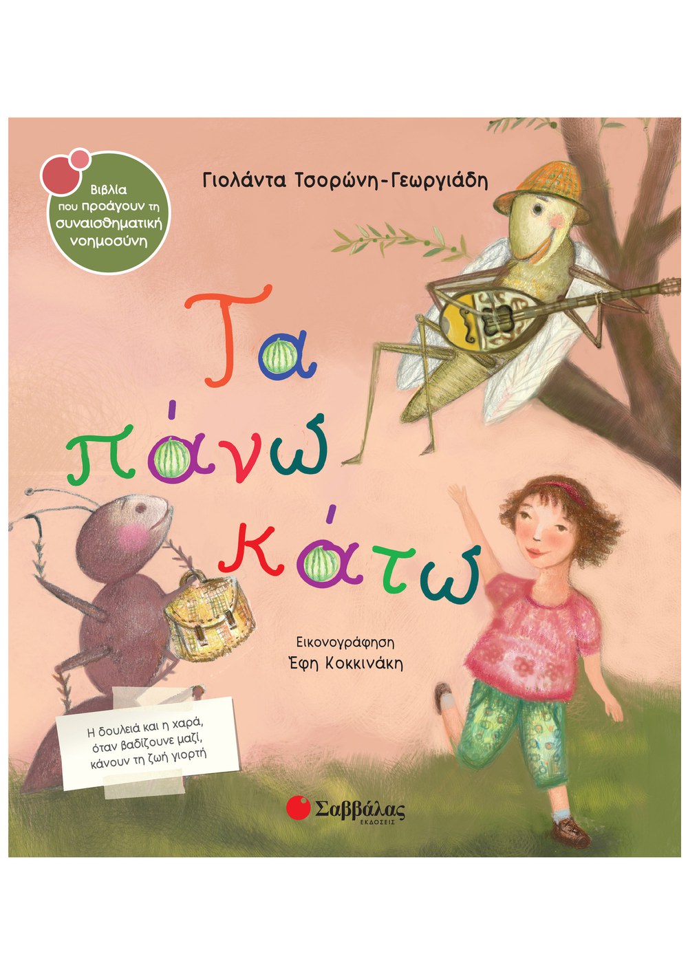 Το βιβλίο: Τα σχολεία ανοίγουν σε λίγες μέρες. Τα μυρμήγκια αποφασίζουν να φτιάξουν δώρα για τα παιδιά. «Να τα ‘χουνε για σχολικά στην τάξη που θα πάνε και σαν εμάς να εργάζονται ποτέ να μην ξεχνάνε» λένε. Το μαθαίνουν τα τζιτζίκια και αποφασίζουν να προσφέρουν κι εκείνα δώρα στους μαθητές! Μα τι μπορούν να φτιάξουν αυτά που δεν ξέρουν να κάνουν τίποτα, αφού δε δούλεψαν ποτέ; Κι όμως! Την πρώτη μέρα του σχολείου ήρθανε… τα πάνω κάτω!