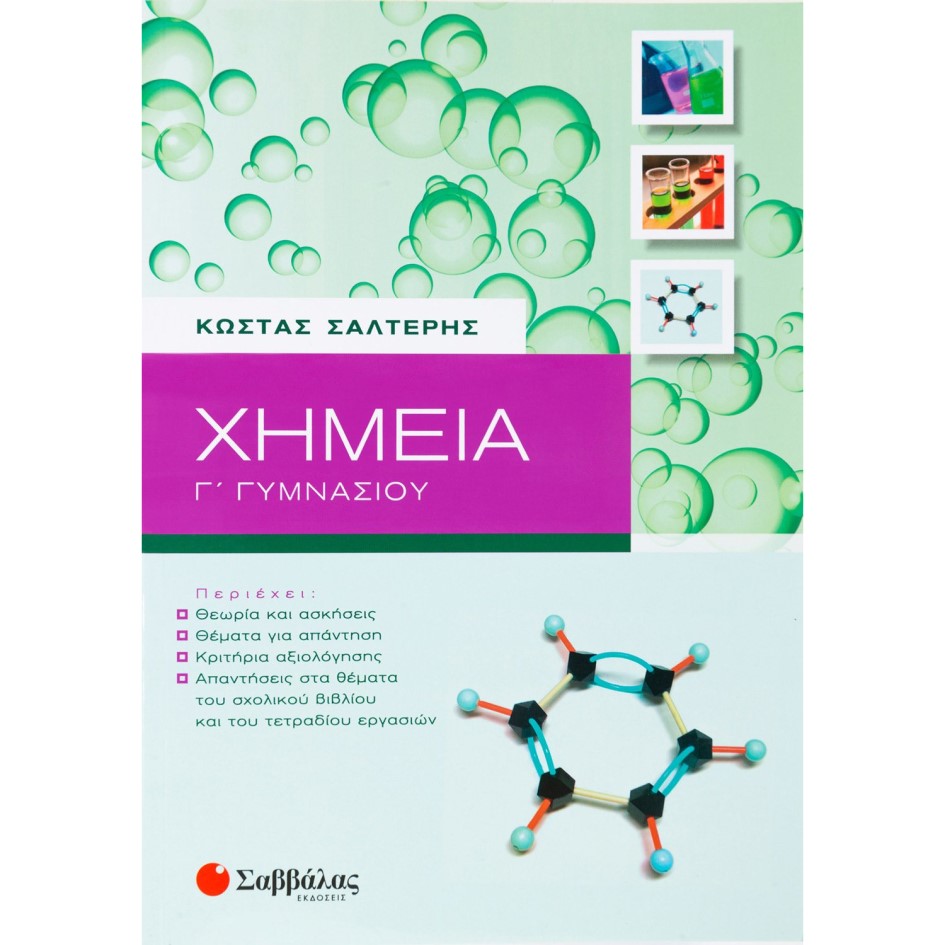 Το βιβλίο αυτό αποτελεί ένα πλήρες βοήθημα για τους μαθητές της Γ’ Γυμνασίου. Στόχος του είναι να συμβάλει στην κατανόηση της Χημείας ώστε οι μαθητές να ανταποκριθούν στις απαιτήσεις της τάξης τους, αλλά και να αποκτήσουν γνώσεις που θα τους φανούν χρήσιμες για το Λύκειο.