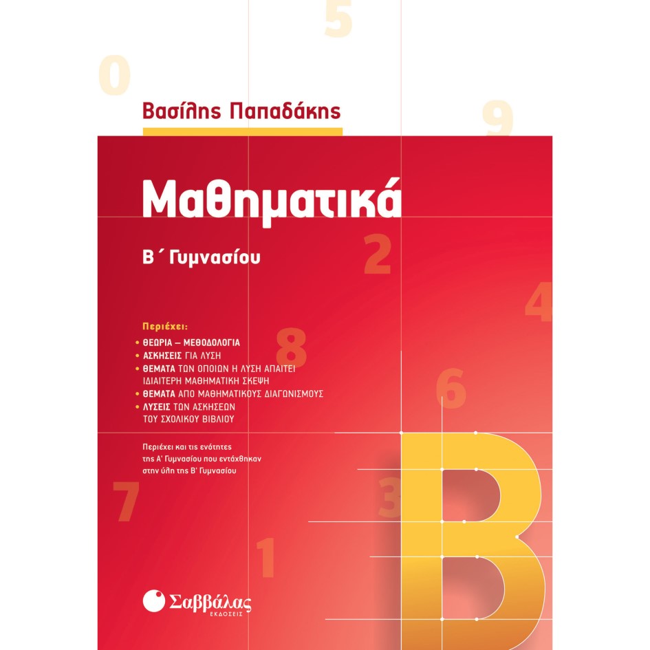Η ύλη των Μαθηματικών της Β’ Γυμνασίου περιέχει σημαντικά κεφάλαια. Η εξοικείωση με τις νέες έννοιες είναι απαραίτητη τόσο για τη Γ’ Γυμνασίου, όσο και για τις τάξεις του Λυκείου. Το βιβλίο αυτό έχει γραφτεί κατά τέτοιο τρόπο, ώστε ο μαθητής να ξεκινά με τη θεωρία και τις βασικές εφαρμογές της, να συνεχίζει με τη λύση ασκήσεων, η δυσκολία των οποίων προοδευτικά αυξάνεται, και να φτάνει σταδιακά στο επίπεδο να λύνει σύνθετα θέματα.
