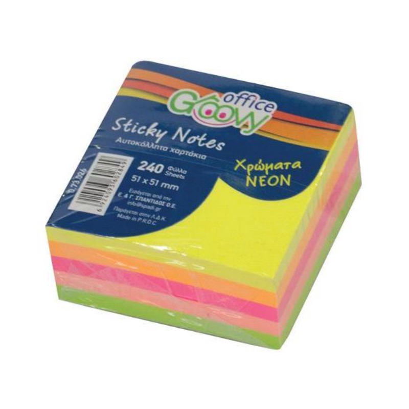 GROOVΥ ΧΑΡΤΑΚΙΑ ΣΗΜΕΙΩΣΕΩΝ ΑΥΤΟΚΟΛΛΗΤΑ ΝΕΟΝ ΜΙΝΙ 51Χ51ΜΜ 240Φ ποσότητα